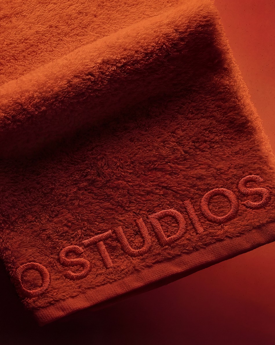 System. The brand extends across membership cards, merchandise, outdoor advertising, digital and the physical studio environment, from the illuminated signage above the entrance to the embroidered towels inside. Every touchpoint reinforces the same idea: this place doesn't perform wellness. It practices it.